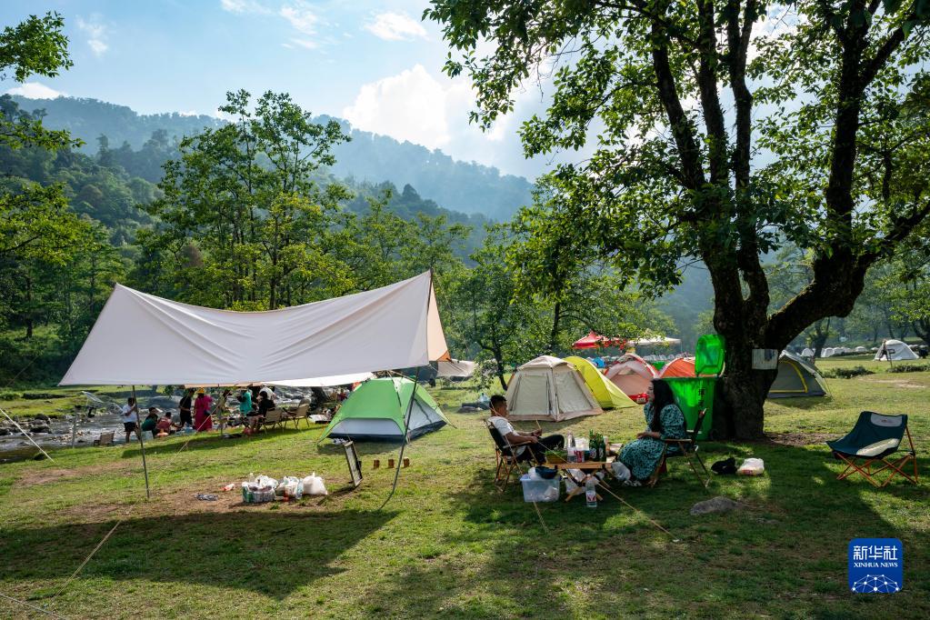 5月29日,游客在坪河草地景区露营。新华社记者 陈欣波/摄