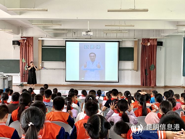 眼健康科普宣传现场,昆明艾维眼科医院的王丽艳医生还对学生进行了爱眼、护眼的眼健康知识科普。现场氛围活跃,孩子们积极的举手回答医生提出的眼健康相关问题。