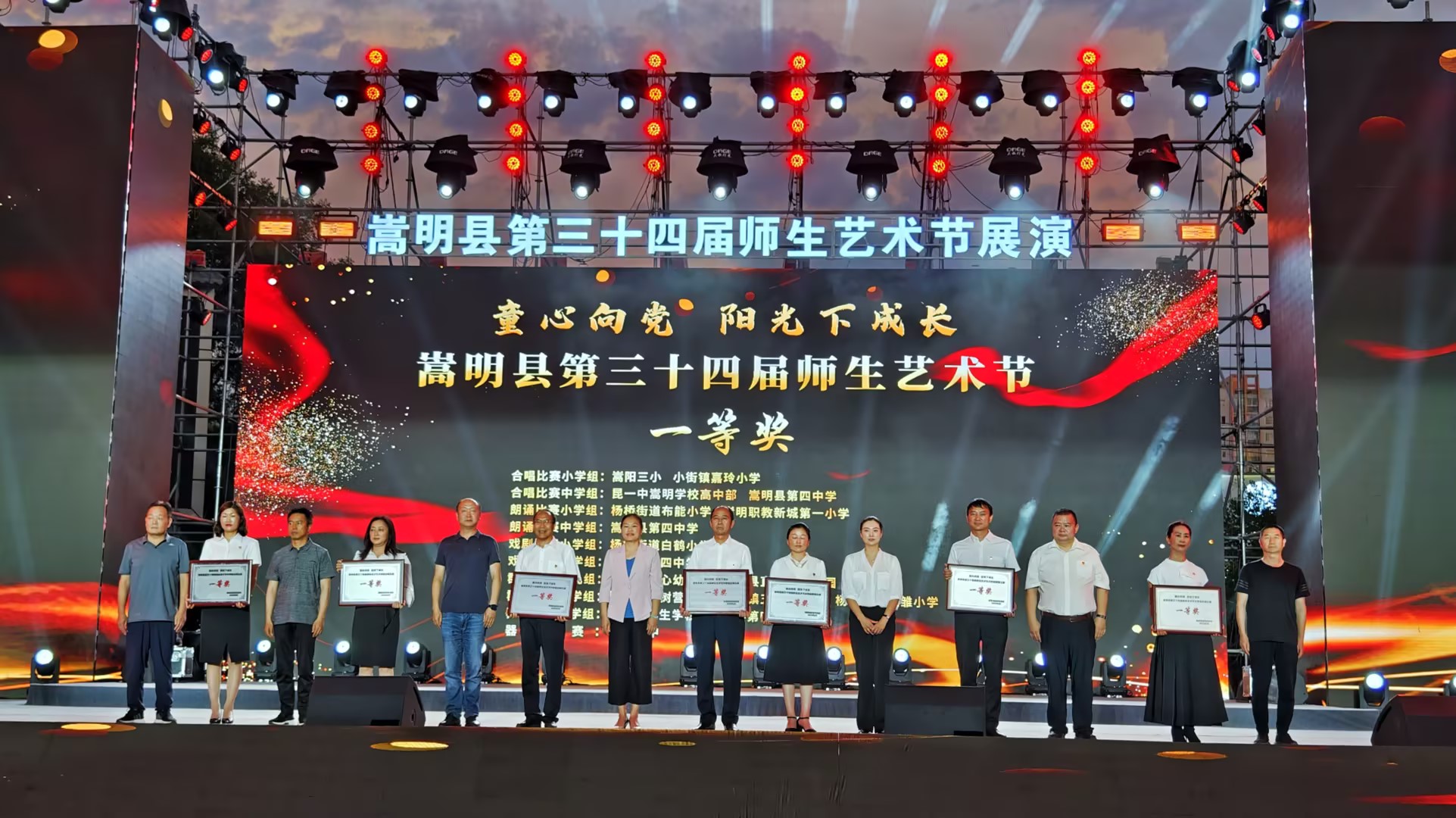 据了解,嵩明县第三十四届师生艺术节文艺展演从3月份至今,设置了书画比赛、独舞、独唱、独奏、群舞、合唱、戏剧等丰富多彩的艺术形式,100多个学校参与,共编排节目400余个,选送文艺节目108个。经过评审,共有70个集体在文艺展演和艺术作品展示中获奖,86人次在个人文艺比赛、67个艺术作品展评中获奖。在当天的节目展演开始之前,领导和嘉宾为在此次艺术节中获奖的个人和集体颁奖。