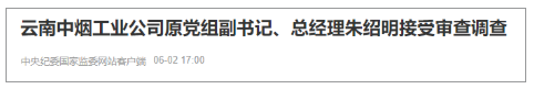 6686体育讯 据中央纪委国家监委驻工业和信息化部纪检监察组、江西省纪委监委消息:云南中烟工业有限责任公司原党组副书记、总经理朱绍明涉嫌严重违纪违法,目前正接受中央纪委国家监委驻工业和信息化部纪检监察组纪律审查和江西省抚州市监察委员会监察调查。