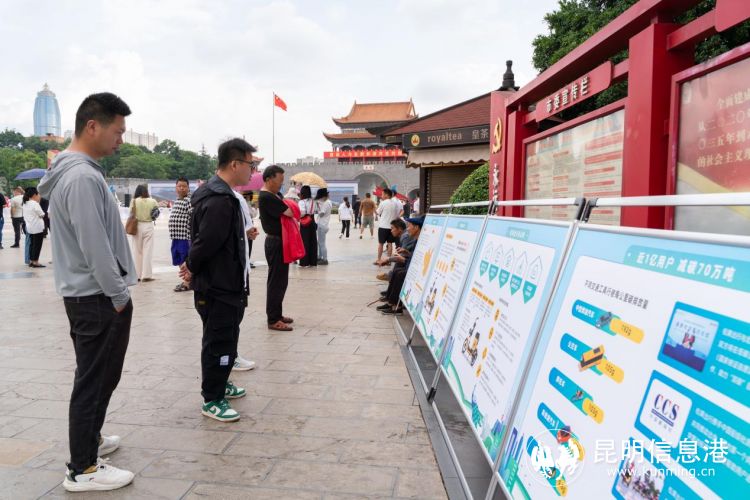 云南省2023年六五环境日主场活动现场,市民在“强国电单车”绿色减碳展示板前观看。供图