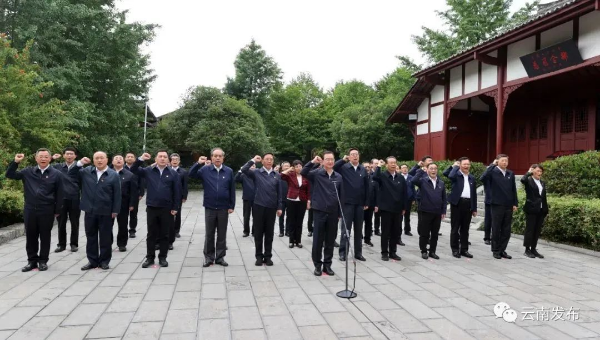 6月5日,参加省领导干部主题教育读书班的全体学员在扎西会议会址,重温入党誓词。雷桐苏 顾彬 摄