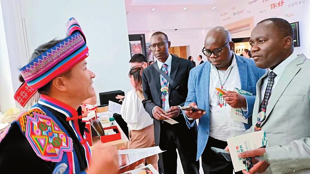 6月9日,北京外交人员服务局和云南省人民政府外事办公室在北京共同举办“彩云之南,拥抱世界”云南特色商品展。当天,近40个国家的90余名驻华使节走进展区,品“云咖”、尝“云果”、赏“云花”,体验“有一种叫云南的生活”。