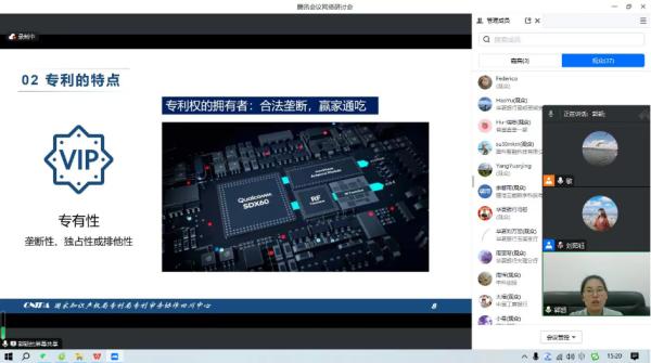 国家知识产权局专利局专利审查协作四川中心对外服务室副主任郭颖为参会人员由浅入深、由点到面地讲解了专利基础知识及专利价值评价体系。昆明市知识产权金融服务平台项目组成员、国科智融科技发展(云南)有限公司高级财务经理刘茹钰,结合实际工作经验,为参会人员详细讲解了知识产权质押登记流程和注意事项。