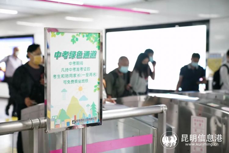 中考期间,昆明地铁全线网所有车站设置“中考绿色通道”,推行“三优一免”服务:为考生提供免费绿色通行服务,考生及2名陪同家属在考试当天可凭2023年中考准考证到客服中心领取“免费进站票”免费乘坐昆明地铁。并享受优先安检、优先进出站、优先处理乘客事务服务。