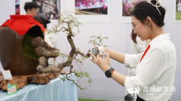 游客观赏盆景作品。