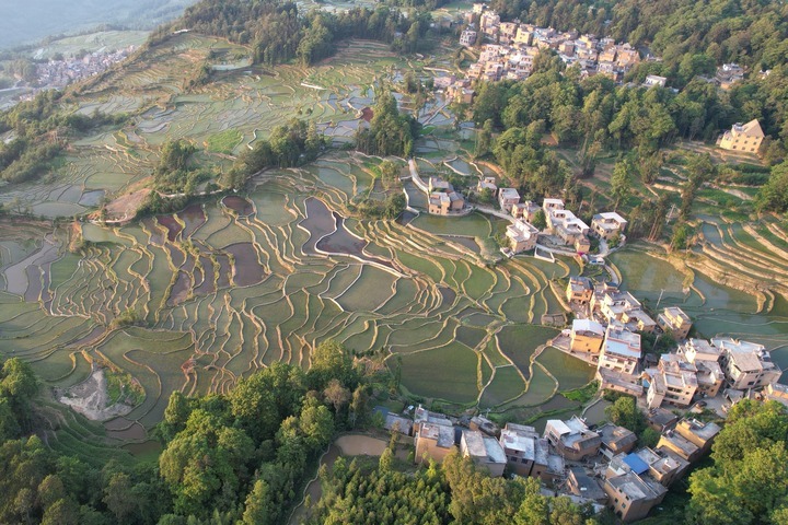5月7日拍摄的元阳哈尼梯田核心区的坝达梯田(无人机照片)。新华社记者 刘诗平 摄