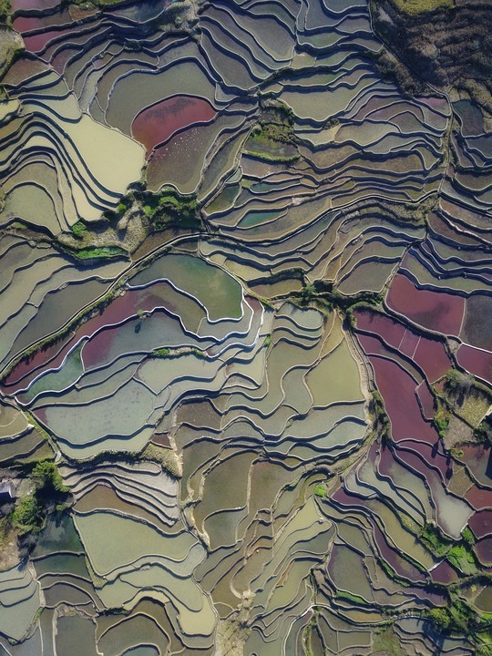 千百年来,哈尼人利用复杂的水渠系统,将水从树木繁盛的山顶引入梯田,构建出森林、村寨、梯田、水系“四素同构”的循环农业生态系统。