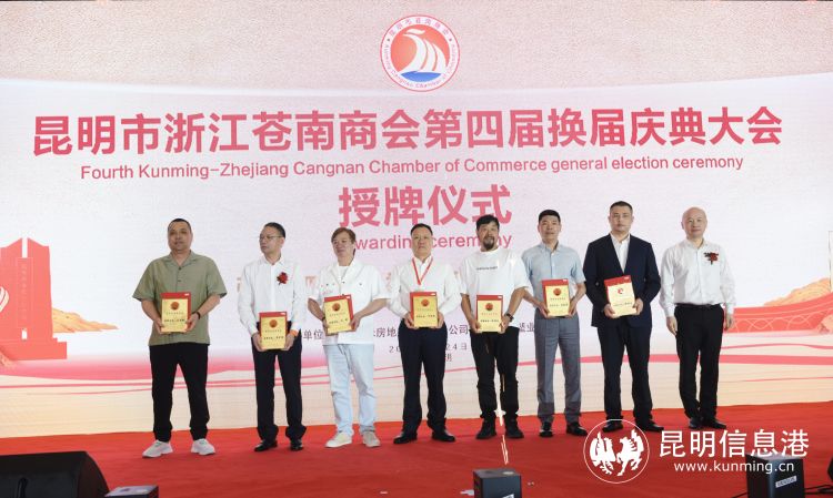 在当天举行的昆明市苍南商会四届一次会员代表大会暨换届庆典大会上,宣读了新当选的新一届商会领导班子结果、进行了商会党支部书记交接仪式、举行了商会理事会组成人员授牌仪式、为商会顾问颁发聘书、为新当选名誉会长和执行会长等授牌,同时为苍南县矿山井巷行业协会云南分会授牌。
