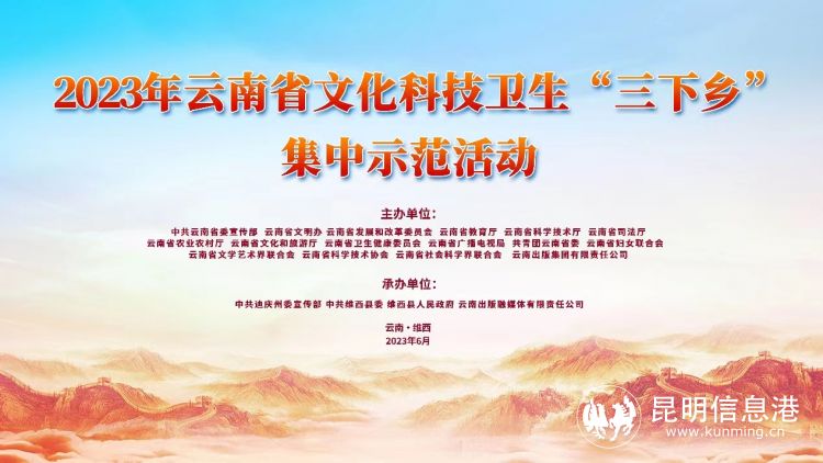记者从云南省委宣传部获悉,2023年文化科技卫生“三下乡”集中示范活动将于6月27日在迪庆州维西县举行,届时各级相关单位把理论政策、科学技术、医疗服务及优秀的精神文化产品送到群众家门口。