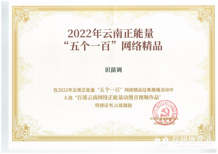 《识菌调》入选2022年云南正能量“五个一百”网络精品征集展播活动“百部云南网络正能量动漫音视频作品”