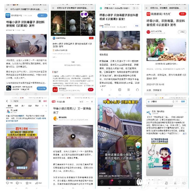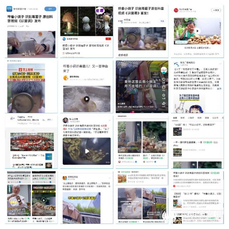 每年的食菌季节,云南各相关部门都会通过多渠道、多形式发布野生菌中毒预警和科普信息,以避免中毒事件发生。“哼着小调子,识别毒菌子”,《识菌调》以通俗易懂的语句,朗朗上口的曲调,迅速将剧毒鹅膏菌的主要特征清晰准确地传导给广大群众,引起网民广泛关注和学习。仅一天时间,数十家媒体机构以及云南省数十个州市、县级融媒体中心转发分享。据不完全统计,24小时内该视频全网播放量突破1000万人次,成为去年云南科普推广的“爆款”之一。