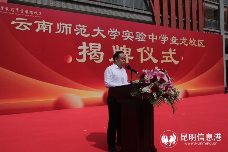 随后,在与会各级领导的共同见证下,云南师范大学党委副书记、校长王德强,盘龙区委副书记、区长高庚等领导共同为学校揭牌。