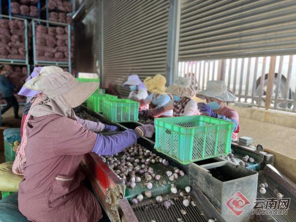 过去,种植户会将收上来的大蒜拉到市场上去批发,价格受市场波动影响大,有时候烂在地里滞销。如今,在当地新农人的带动下,云南紫皮大蒜积极开拓线上销售渠道,在拼多多等电商平台的帮助下,飞出大山畅销全国。