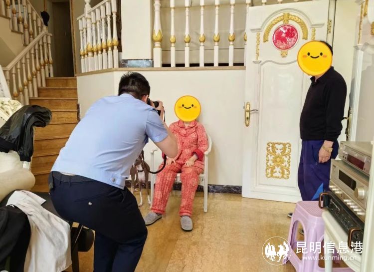 近日,昆明市公安局五华分局华山东路派出所社区民警接到辖区群众王先生的电话,王先生称,自己母亲身份证到期需要补办,但身体行动不便,不能亲自到派出所补办身份证。了解到老人的特殊情况后,社区民警带上采集设备立即前往王先生家中为老人采集照片,整理衣服、梳理头发,民警一遍又一遍耐心细致地引导摆正姿势,“好,准备拍照,321……”,终于采集到了合格的照片。