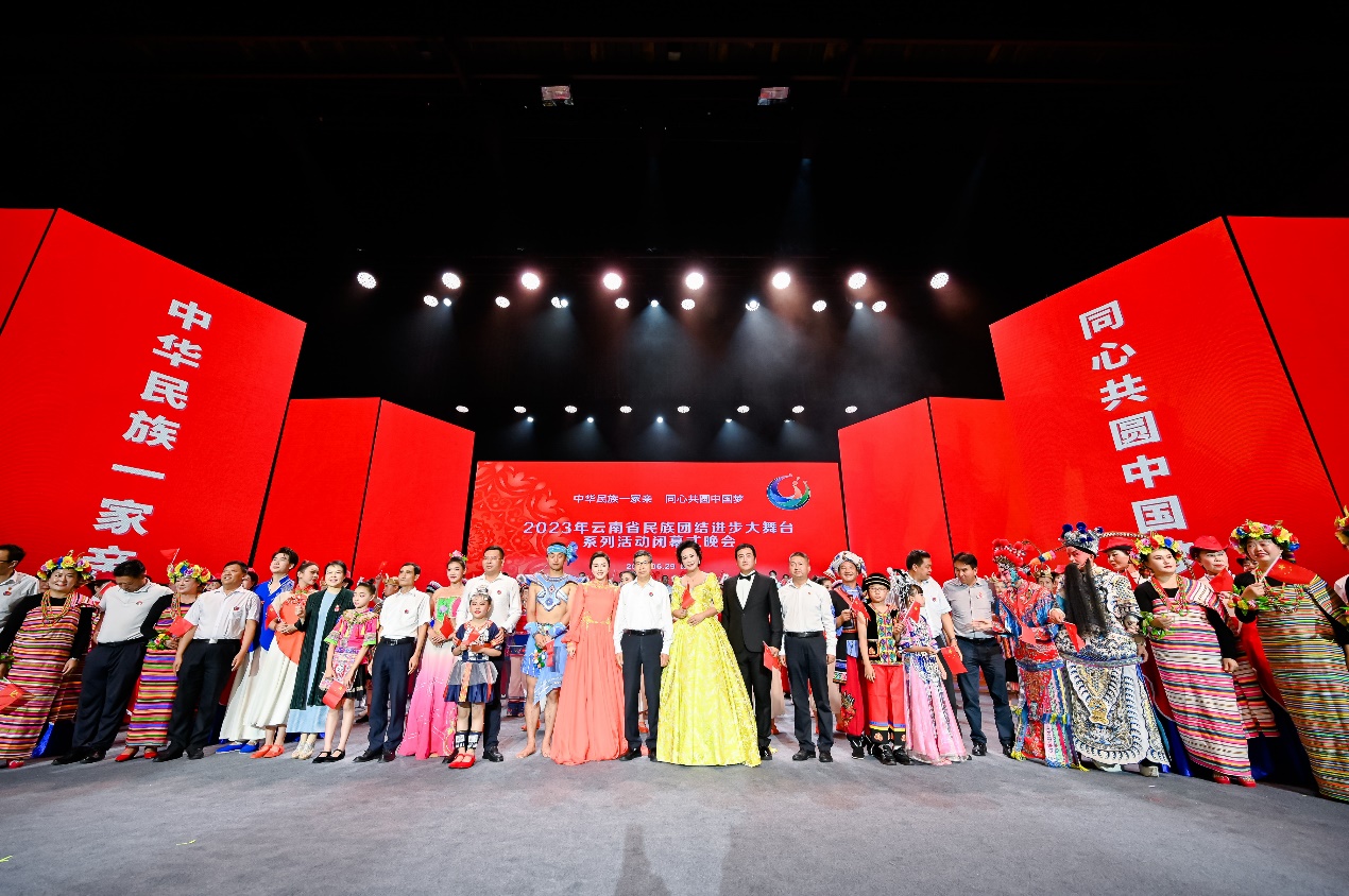 闭幕式上,由昆明市文化馆带来的合唱《没有共产党就没有新中国》拉开序幕,整场演出共分《情系彩云南》《建设彩云南》《奋进彩云南》三个篇章,展示了全省各民族文化的多姿多彩和传统文化的无穷魅力、各民族相知相亲相系的深情厚谊和“中华民族一家亲,同心共圆中国梦”的美好景象。非遗戏曲表演《古滇新韵》、象征团结和谐的童声合唱《石榴籽籽心连心》、歌舞《雨林情话》《彩云欢歌》《大理三月好风光》等表演生动展现了“有一种叫云南的生活”的美好画卷。特别是云南省第五届群众文化“彩云奖”获奖节目《党的恩情比山高比水长》,独龙族群众用独龙语唱着“感恩歌”,用歌声献礼即将到来的七一建党节,展现了独龙族群众感恩共产党,建设美好家园、守护绿水青山、促进民族团结、推进乡村振兴的生动画面。晚会在《灯火里的中国》《歌唱祖国》的合唱声中圆满落幕,唱响了铸牢中华民族共同体意识的时代主旋律,表达了全国各族人民对祖国的美好祝愿。现场颁发了2023年云南省民族团结进步大舞台系列活动组织奖12个,优秀组织奖7个。