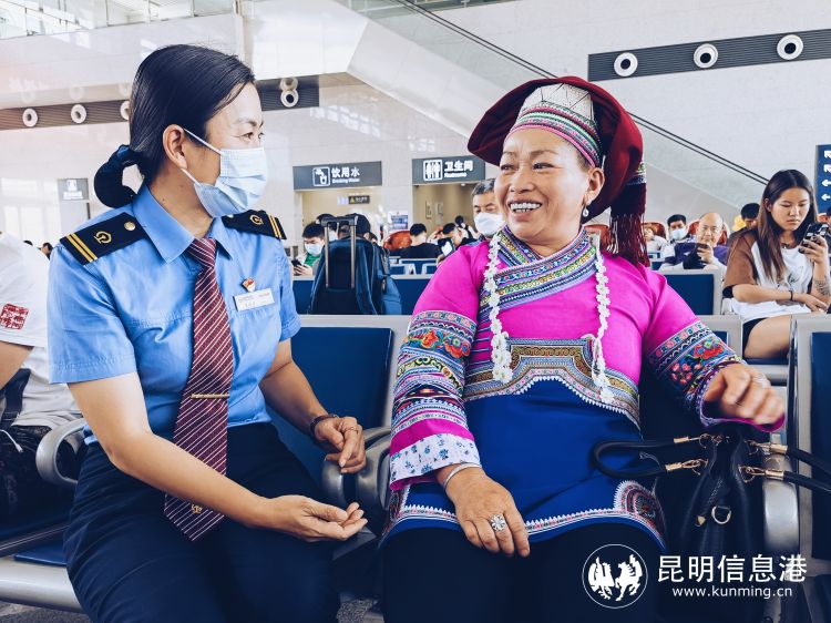 昆明车务段服务少数民族旅客。石佳 摄