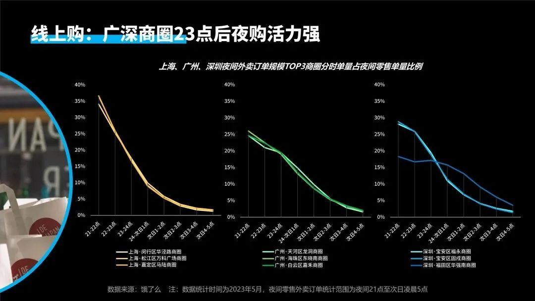 同时夜间也不再局限于线下空间的交往。晚上敷着面膜、蹲守在直播间前等着123下单的人们,点外卖到家享受夜宵的人们,也可以被称为夜间经济的参与者。夜间经济线上端的内容正变得越来越丰富,通过线上和线下场景的融合,夜间经济也覆盖到了更多元的人群。