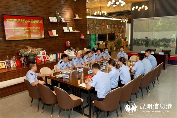 王嘉懿代表五华分局党委对出入境管理局金杰同志一行的到来表示热烈欢迎。希望通过党组织互助共建活动,创新“党组织+”和“链式”组织生活等党建工作模式,拓展“三会一课”、主题党日等基本组织生活内涵,共学党的创新理论、法律法规,积极探索形成工作联动、服务互助等创新机制。坚持把互助共建作为锻炼干部民警的重要平台,确保党员民警在相互学习、不断提高中锤炼党性、提升能力。