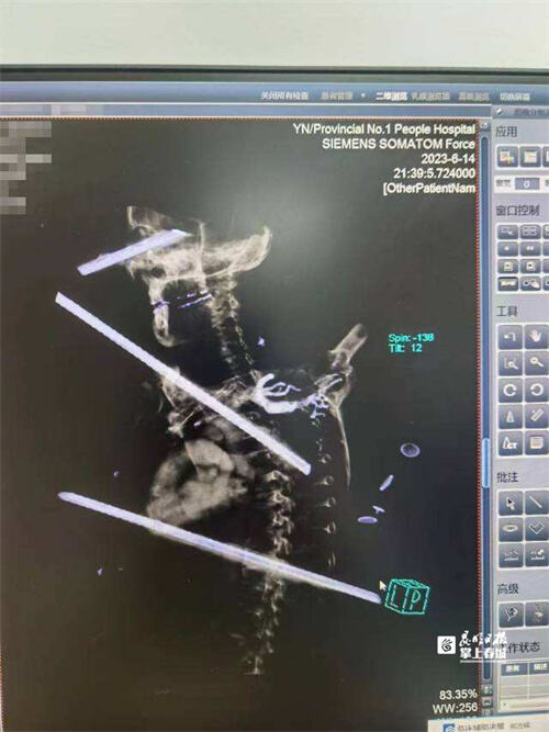 7月3日,在云南省第一人民医院(以下简称“省一院”)急诊创伤外科病房,49岁的熊先生躺在病床上,对前来叮嘱出院注意事项的医护人员连连道谢,完全看不出在半个多月前熊先生的身体曾被3根钢筋贯穿。