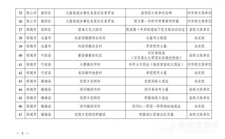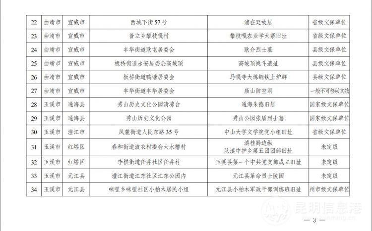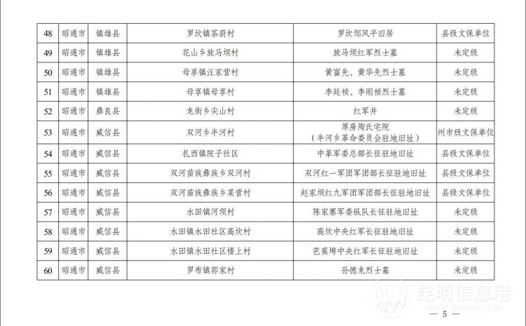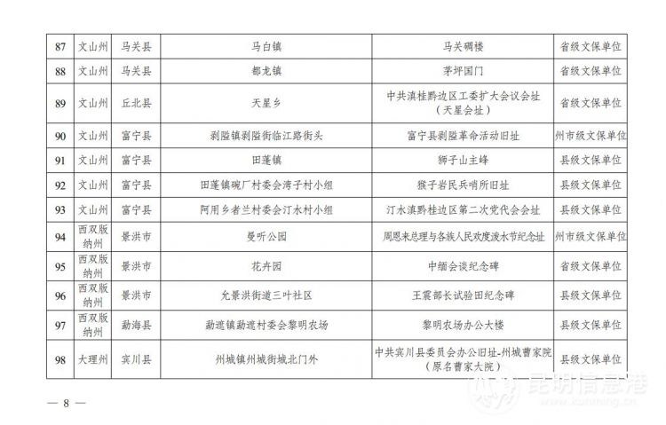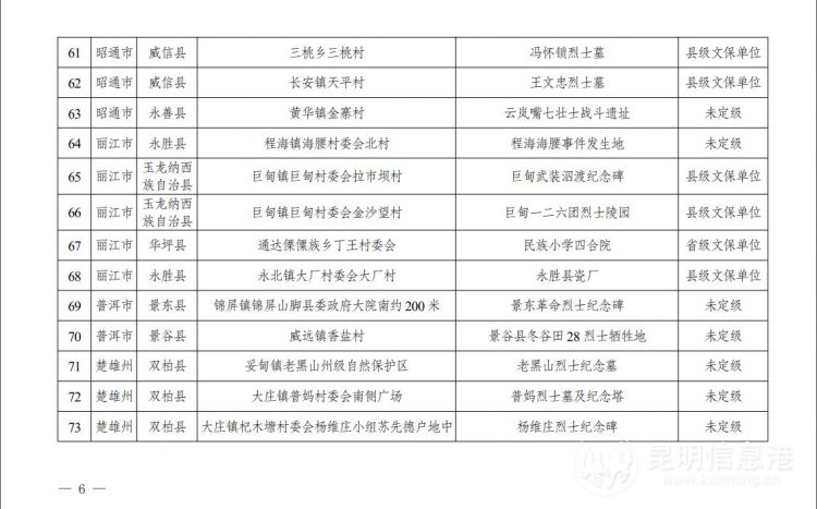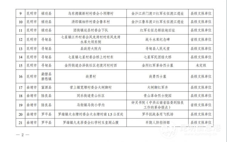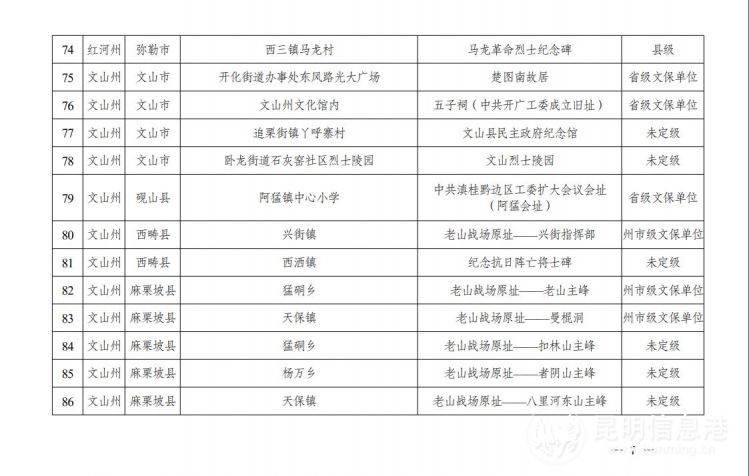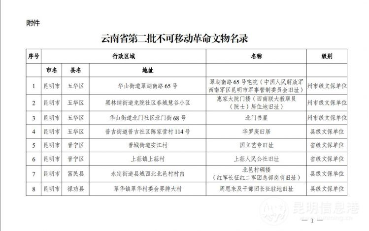 云南省第二批不可移动革命文物名录