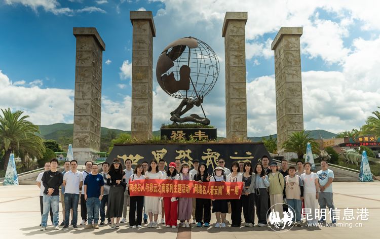 图为“网络名人看云南”在太阳历文化园合影 6686体育 记者谢星宸/摄