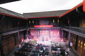 观众在莲花池庭院剧场看演出。