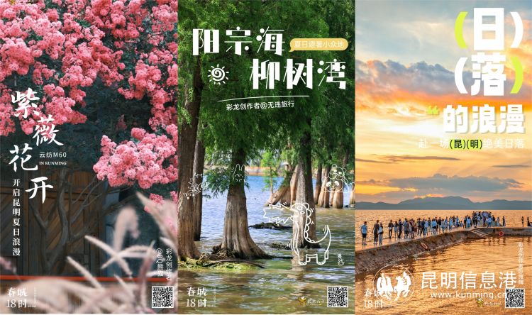 漫步昆明城中,转角便是幸运,紫薇花海遮住烈阳,何不来一张美美的打卡照再寻一处湖边咖啡馆,慢坐闲聊,感受微风摇曳夏荷;夏天是青柠味的阳宗海柳树湾,是橘子味的海晏村落日黄昏,昆明城东的晚风依旧很温柔,一个人慢慢地走,沿途别忘了为晚霞停留;在昆明城南的滇池生态湿地,扎一顶帐篷,自然触手可及;海埂边绣球花铺成的毯子,不插电的亲子时光,是一辈子难忘的回忆。夏天的蝉鸣很噪,教室窗外疯狂生长的枝丫却总也挡不住烈阳,昆明城西的安宁大学城,炙热的青春有迹可循,校园里的少年,聊着自己天花乱坠的梦想。昆明城北,来一场说走就走的徒步登山之旅,在山野之间感受真正的自由,把夏日的野生杜鹃镌刻在记忆里,在没有天花板的地方,大口吸氧。