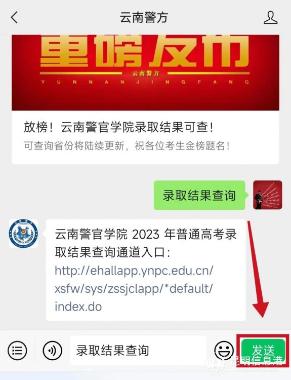 查询方式:可在“云南警方”微信公众号后台回复“录取结果查询”获取查询通道入口,进入网页后按照下图指引流程查询结果。