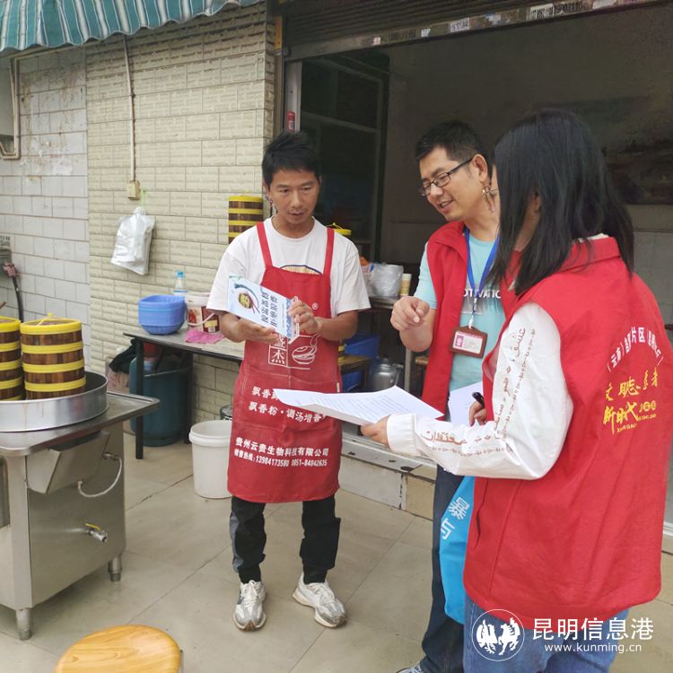 志愿者向商家发放倡议书