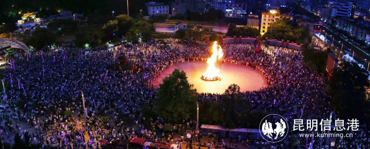随着主火把的熊熊燃烧,千、万人将围着火把载歌载舞,同庆一年一度的彝族火把节,共度不眠的火把狂欢之夜。