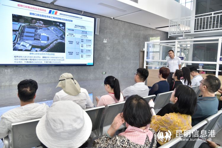 7月25日当天,在昆明市文联党组书记、主席陆毅敏的带领下,调研组先后来到磨憨口岸智慧展示中心、磨憨政务服务中心、磨憨口岸边民互市场、南坡产能片区等地进行实地考察学习。