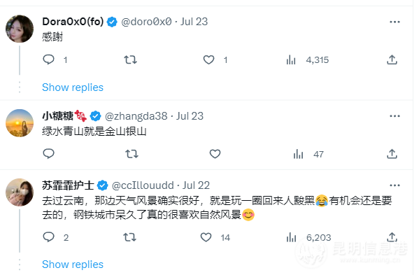 这一帖子立刻引起了大量网民的关注和热议,许多网民表示滇池景色美不胜收,中国绿色生态保护成效显著。网民评论:“绿水青山就是金山银山。”“云南滇池真的很美,强烈推荐有机会的朋友欢迎到中国云南来玩。”“中国对世界生态系统作出贡献。”“走过云南,那边天气确实很好。”