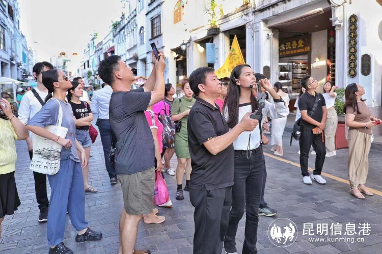 采风团一行游览骑楼老街