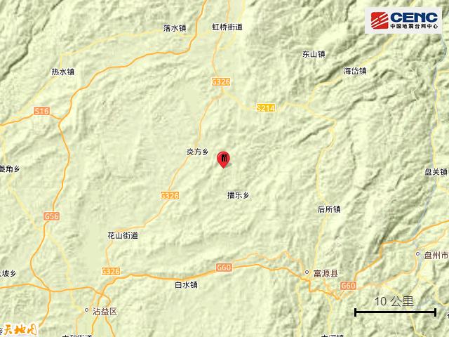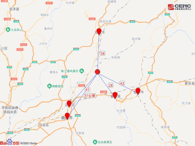 周边县城:震中距富源县28公里、距宣威市38公里、距沾益区41公里、距贵州盘州市43公里、距麒麟区51公里,距曲靖市52公里,距昆明市167公里。