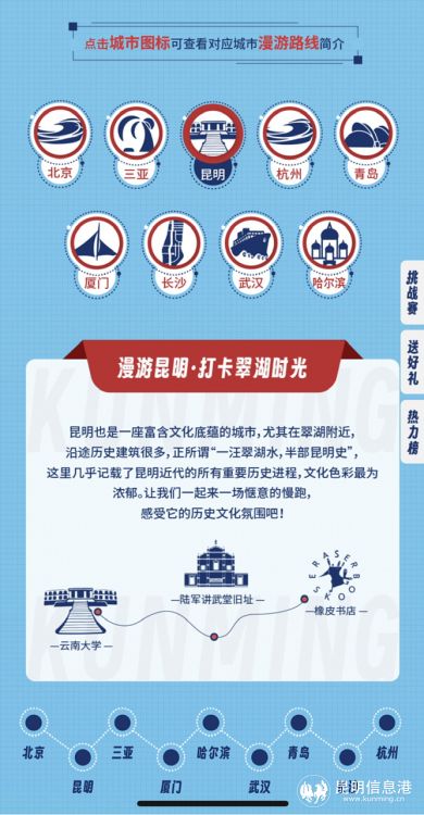 据悉,作为热门城市之一,用户可选择参与昆明城市漫跑挑战赛,主题为“漫游昆明·打卡翠湖时光”,路线为翠湖沿线的云南大学、陆军讲武堂旧址、橡皮书店等文化地标及景点地标,线上陪跑语音课程由前中国女排国家队运动员、云南女排青年队主教练张娴录制,她将以音频模式提供全程“陪跑”服务并提供专业技术指导,陪你一起“跑览”昆明好风光。