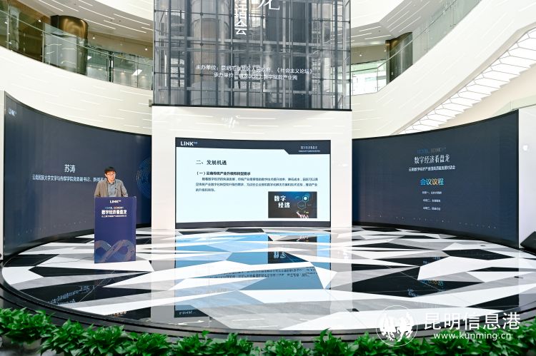 在主旨发言环节,来自专业学者和行业知名企业的代表为数字经济产业园建设提供广阔思路和多元化解决方案。云南民族大学文学与传媒学院党委副书记、新闻系主任苏涛围绕《云南数字经济产业园高质量发展的基础与机遇》进行了分享。他认为,数字经济产业园的发展可以满足传统产业数字化转型和升级的需求,为云南数字经济及其产业市场拓展带来新的发展空间。
