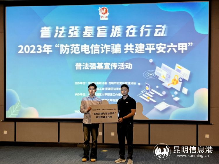 同时,由六甲街道与滇池学院人文学院共同成立的“基层治理与法治宣传”校地共建工作室正式揭牌,双方的共同合作,将推动普法强基、全民反诈工作进一步开展。