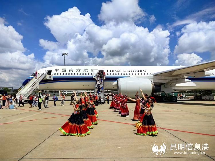 除了特色迎客活动,南航还与昆明长水机场协调开展飞机降落机坪后的特色送客仪式。在嘹亮的彝族歌声与高亢的大三弦的伴奏下旅客们走出机舱,观看“朵洛荷”舞蹈和民族风情表演。“没有想到我的旅程从飞机上就开始了,这是一段难忘的经历。”杨先生感叹道。