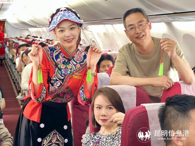 为保障主题活动顺利,南航选派经验丰富的乘务组执行航班。在万米高空之上,乘务员身着彝族传统服装,开展互动问答,向旅客展示云南民族传统文化。“云南在祖国西南方,是块充满民族风情的土地,南航选择在广州至昆明的航班上开展主题活动,也是为了在空地联动中让更多人了解七彩云南,让旅客感受彝族的悠久文化。”带班主任乘务长徐玲玲表示。