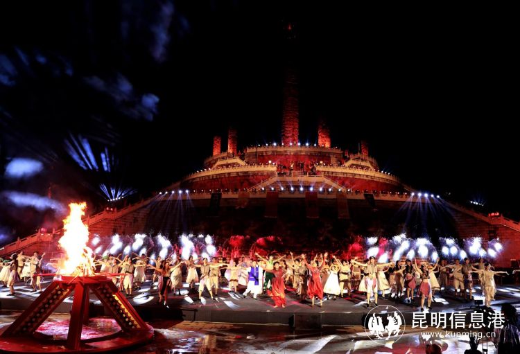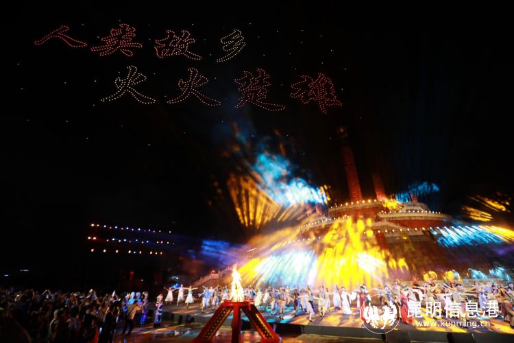 6686体育讯 记者杨雁 火火楚雄,星火璀璨。2023年8月10日晚,中国·楚雄2023年彝族火把节祭火大典在太阳历文化园举行。半小时的焰火燃放照亮了夜空;千架无人机编队表演,璀璨夺目;彝家儿女穿着节日盛装,和来自四面八方的游客围着熊熊篝火,跳起欢快的左脚舞,大家共同在火把节感受火之律动,体味火之激情,领略火之神韵。
