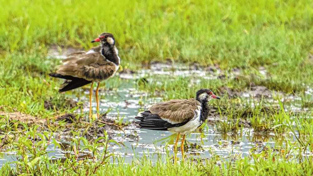 近日,肉垂麦鸡现身拉市海保护区,这是拉市海首次发现该鸟类。