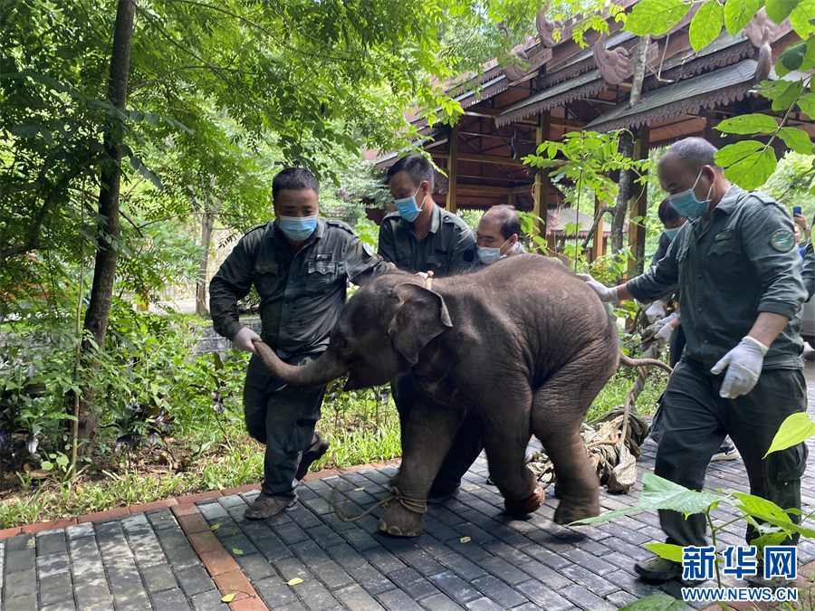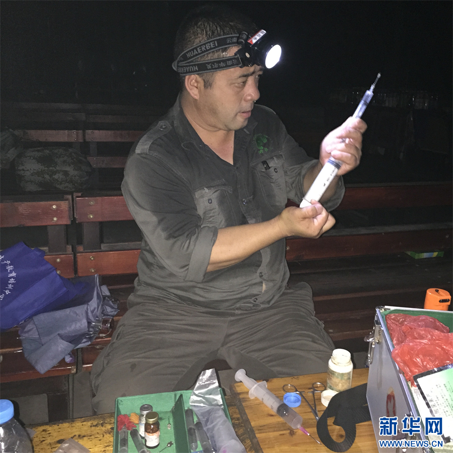 保明伟为怀孕母象检查。6月11日摄 新华网 柴静/摄