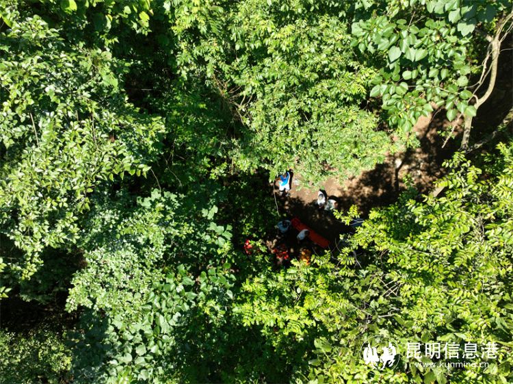 接警后,盐津县消防救援大队立即出动3车16人火速赶赴现场。到场后,消防救援人员立即利用无人机进行搜索,在距山底约200米处的陡峭的山坳处发现被困村民的大概位置。但由于原来的上山道路大部分被杂草覆盖、且多处塌陷,救援人员根本没有合适的道路下到被困村民掉落的位置,这些客观条件都给救援增加了难度。
