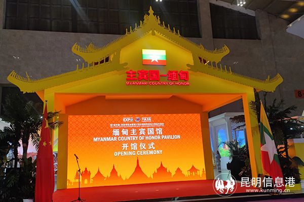 6686体育讯 8月16日上午,第七届中国—南亚博览会的缅甸主宾国馆开馆。缅甸主宾国馆的形象展区以曼德勒皇宫和仰光市政府大楼等建筑为设计元素,以白色和金色为主色调,展示了缅甸独具特色的建筑和文化。