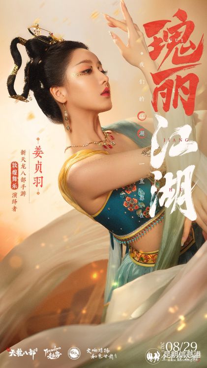 行侠塞外,瑰丽的敦煌乐舞尽在眼前。姜贞羽领衔敦煌舞乐演绎者,衣罗绮,曳锦绣,耀珠翠,施香粉,盛装登场,宛如飞天仙女般美得令人窒息。整个宣传海报由姜贞羽以敦煌莫高窟壁画中的乐舞形象打造而成,再现敦煌千年古乐盛景。