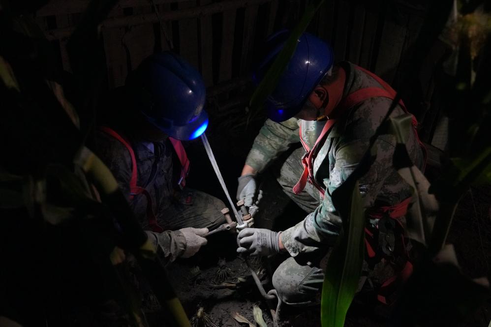 国网牡丹江供电公司电力抢修人员连夜进行抢修。(受访者供图)