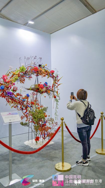 展会同期还面向社会公开征集组织了“斗南插花艺术设计大赛”。以“流光40载,斗南竞繁花”为题,现场创作了31件大型插花艺术作品,为来自全国花艺设计师提供展示自我的舞台,同时也展现了花卉创作的无限魅力。从现场作品来看,31件作品风格各异,涵盖了现代插花艺术、装置艺术设计、园林景观结合等多种风格,充分展现了多种材料在植物创作中的应用与表达,也将引领到场的观众走进一场关于艺术创作的体验之旅,沉浸式感受创作者的初心与思绪。