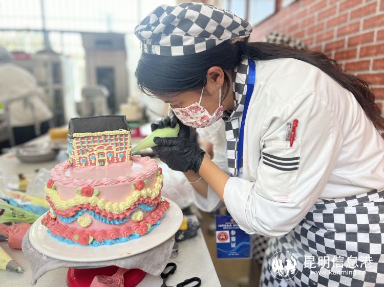 西式面点比赛选手竞赛中。