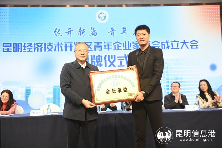当天,还举办了昆明经济技术开发区青年企业家商会成立大会。成立大会上,参会领导为昆明经济技术开发区青年企业家商会揭牌,为昆明经济技术开发区青年企业家商会会长单位、副会长单位、秘书长单位、监事长单位、监事单位、理事单位授牌。